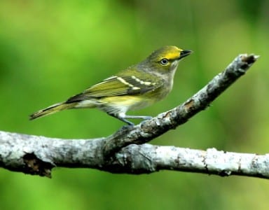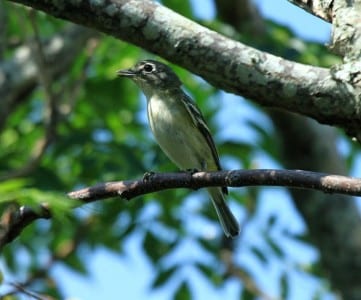 As our breeding and passage vireos leave the Continent for the Tropics, the Blue-headed Vireo drops down from the North for a balmy winter in the Deep South. A grayish bird with bold white eye-rings, these hide in southern forests and scold anything and everything that happens by. You can see how their color matches deciduous forests, absent of leaves and the bright colors of spring and summer.