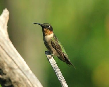 Female hummers lack the colorful gorget you saw on the ruby-throat’s picture and some are quite difficult to tell from other species (such as Black-chinned females). Few birds can hover like hummingbirds and I find it one of the great miracles of Life on Earth that they fly in spring back across the Gulf of Mexico to our shores. In fall, most seem to go around the Gulf as circum-Gulf migrants.