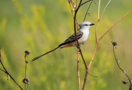 The diverse group of flycatchers is most eloquently represented by the Scissor-tailed, much more common in October than earlier in fall. Aside from the long tail (especially the males), they have salmon flanks and a curious, gray head, neck and chest. These breed in a curiously unique range of North Texas and Oklahoma, plus a few that spill over into places such as the Upper Texas Coast. Flycatchers are a primitive group of songbirds, actually in a separate sub-order, with major structural differences, such as in their syrinx. There are easily-identifiable groups, usually designated by the genus name, such as phoebes, pewees and king birds. But the toughest of all North American birds to identify is the woeful Empidonax flycatchers, around a dozen species, evenly split between our Nation’s East and West. Read on…