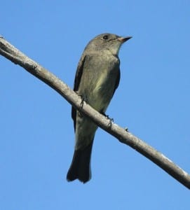 Weather from the West, like we’ve experienced recently, understandably delivers birds from the West. This is the Western Wood-pewee, a slate-colored counterpart to the common Eastern Wood-pewee found all over the East. At the same time we had two Vermilion Flycatchers around, yet another species from the West. The migrations of every year are different and it’s always interesting to see how that fact plays out.