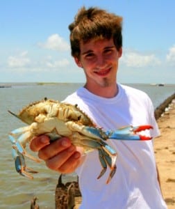 Blue Crab: Size/Limits- must be 5 inches across carapace (point-to-point). No creel limits, BUT ALL SPONGE CRABS (egged females) MUST BE RELEASED.