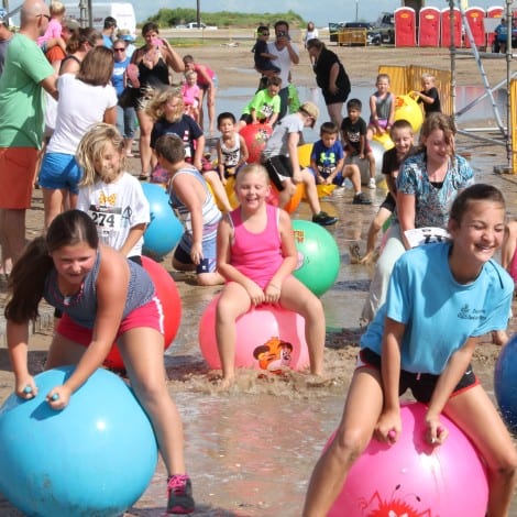 Rain or Shine, the Rollover Bash & Dash was the place to be last Saturday. Day long activities including horse shoes, fishing, volleyball, washer boards, food, drinks, inflatables, vendors and music. The children’s event, 45 in all, ages 4-12, took off from the start line just east of Rollover Pass. They bounced on bouncy balls to the start line, where they ditched the balls and took off running for approximately 1/2 mile, then turned around and headed for the finish line. Their mission was to capture all the pirates they could, bring back the pirate and the booty!