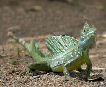 Here’s the female, taking an extra long look at me. The fins of the dorsum aid in heat regulation, as well as a modest defense. I don’t believe they bite either (like the Green Iguana) but the fins can do a very professional job on the hands.