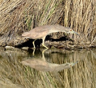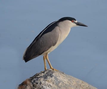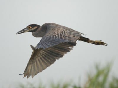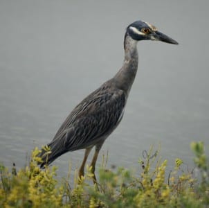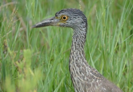 No, Mort, that’s not a Whooping Crane! That’s a Black-crowned Night-heron. This group has a stocky appearance, with short legs and a thick bill for cracking crabs and crayfish. And look at those big eyes for night vision. But what is the bird?