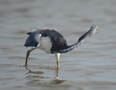 Right! The above bird is a Tri-colored Heron, once called a Louisiana Heron. The white belly gives it away but they also have a long skinny bill and neck. Now, what is the one just ?